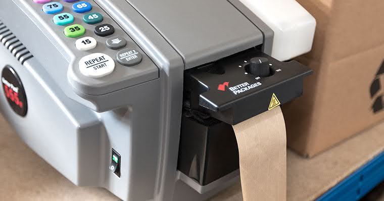 You can also save on the use of tape by using an automatic water-activated tape dispenser and selecting exactly the amount of tape that you need compared to plastic tape.